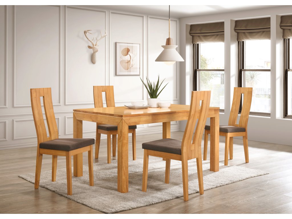 Jídelní stůl MORIS je vyroben z masivního kaučukovníku, což zajišťuje jeho vysokou odolnost a stabilitu. Jeho rozměry jsou navrženy tak, aby poskytoval dostatek prostoru pro 4 až 6 osob, aniž by jakkoliv omezil komfort jednotlivých strávníků.